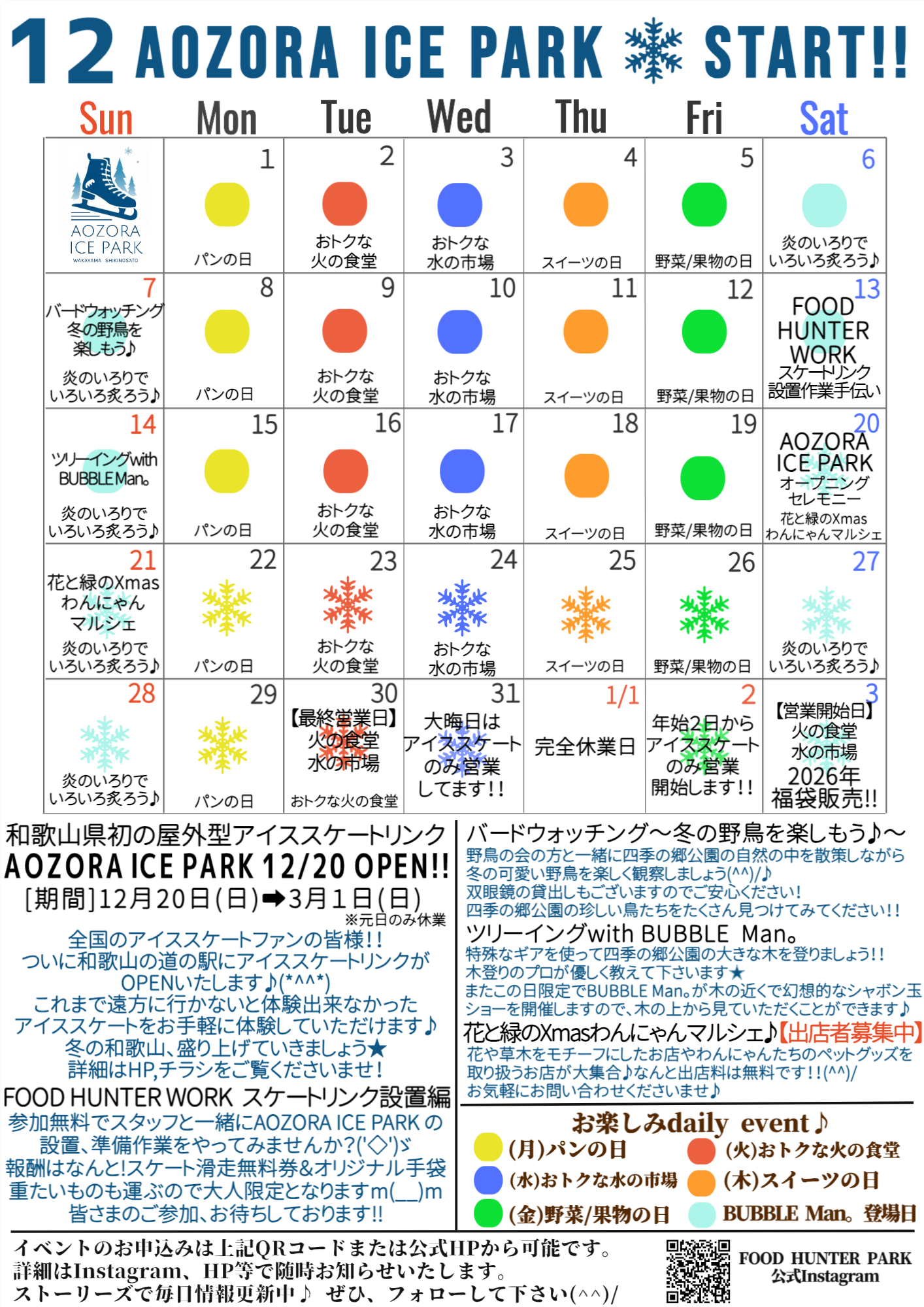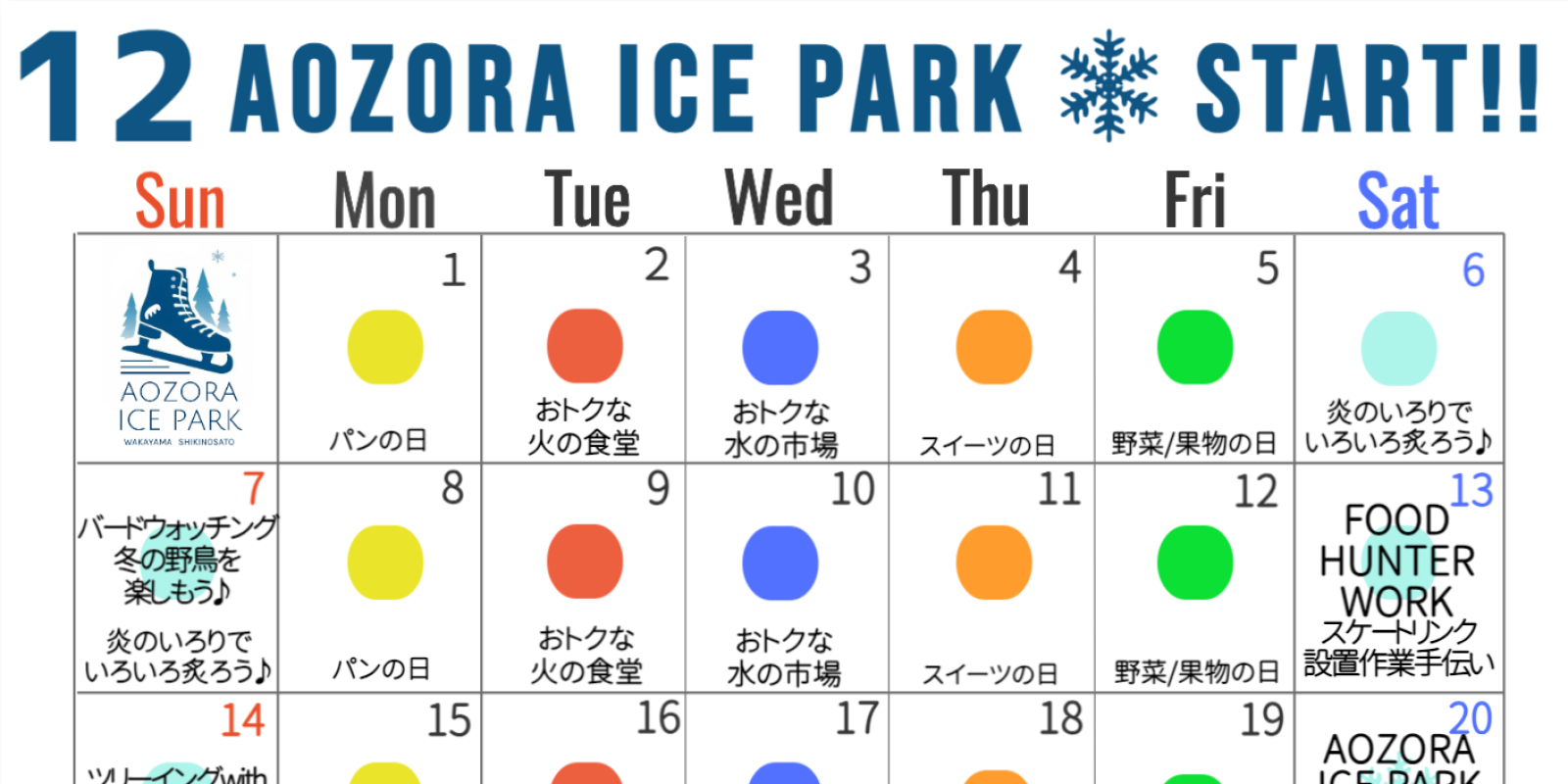 ついにAOZORA ICE PARK がオープン!! 12月EVENTカレンダー更新!!