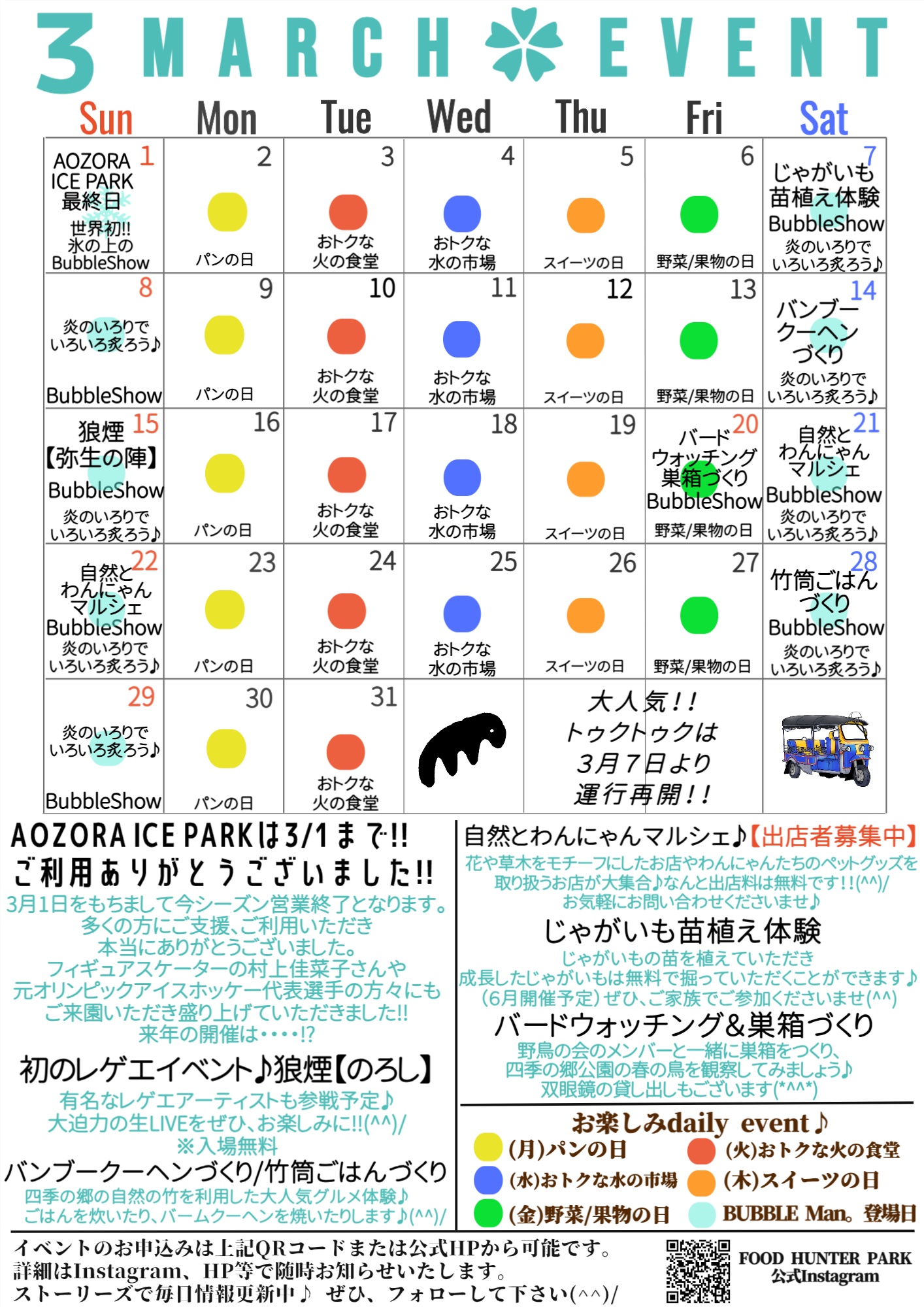 【最新情報】3月のイベントカレンダー更新✿
