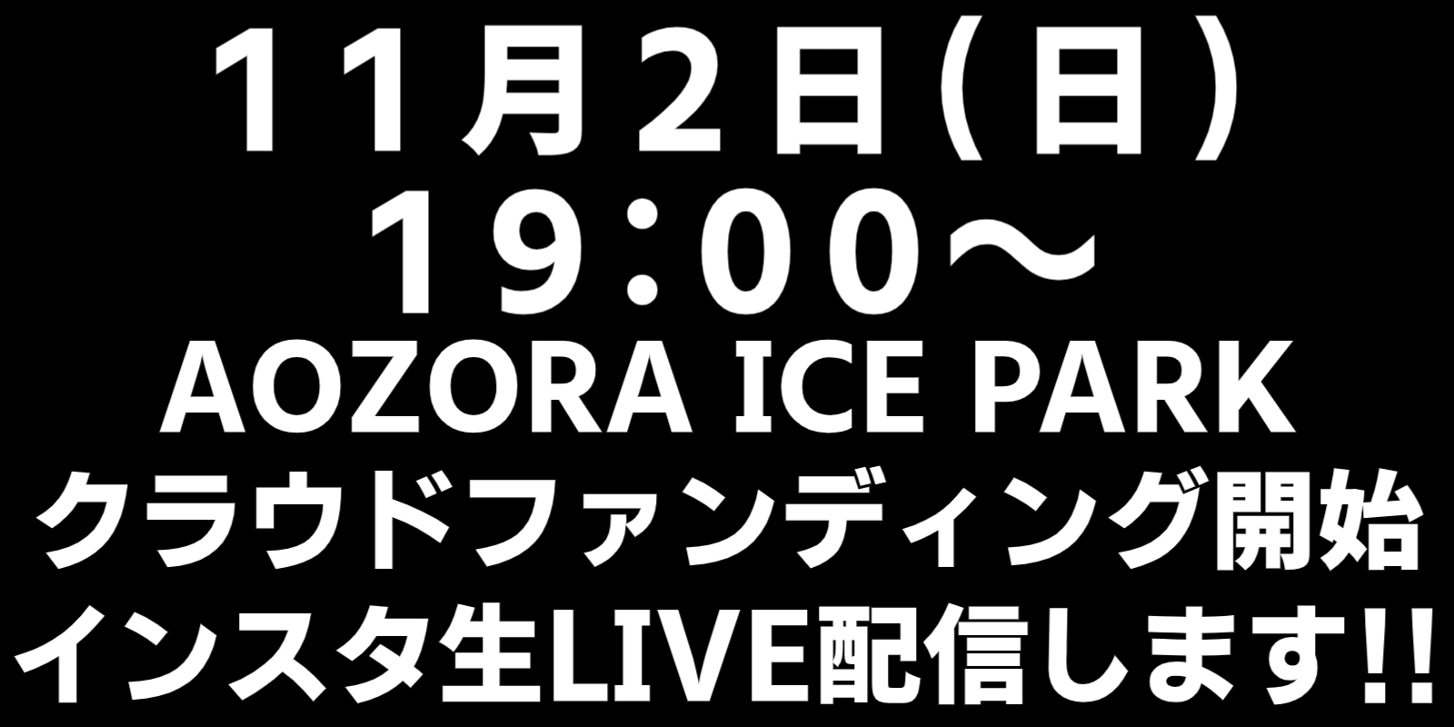 ★11月2日(日)19:00~ AOZORA ICE PARK クラウドファンディング開始記念インスタ生LIVEやります!★