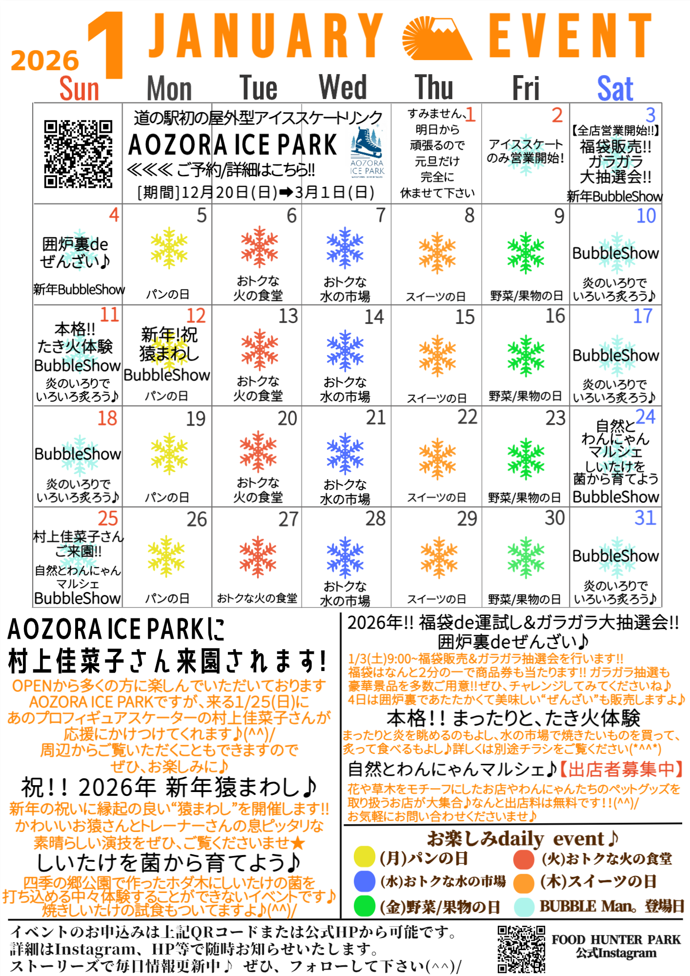 ついにAOZORA ICE PARK がオープン!! 12月EVENTカレンダー更新!!