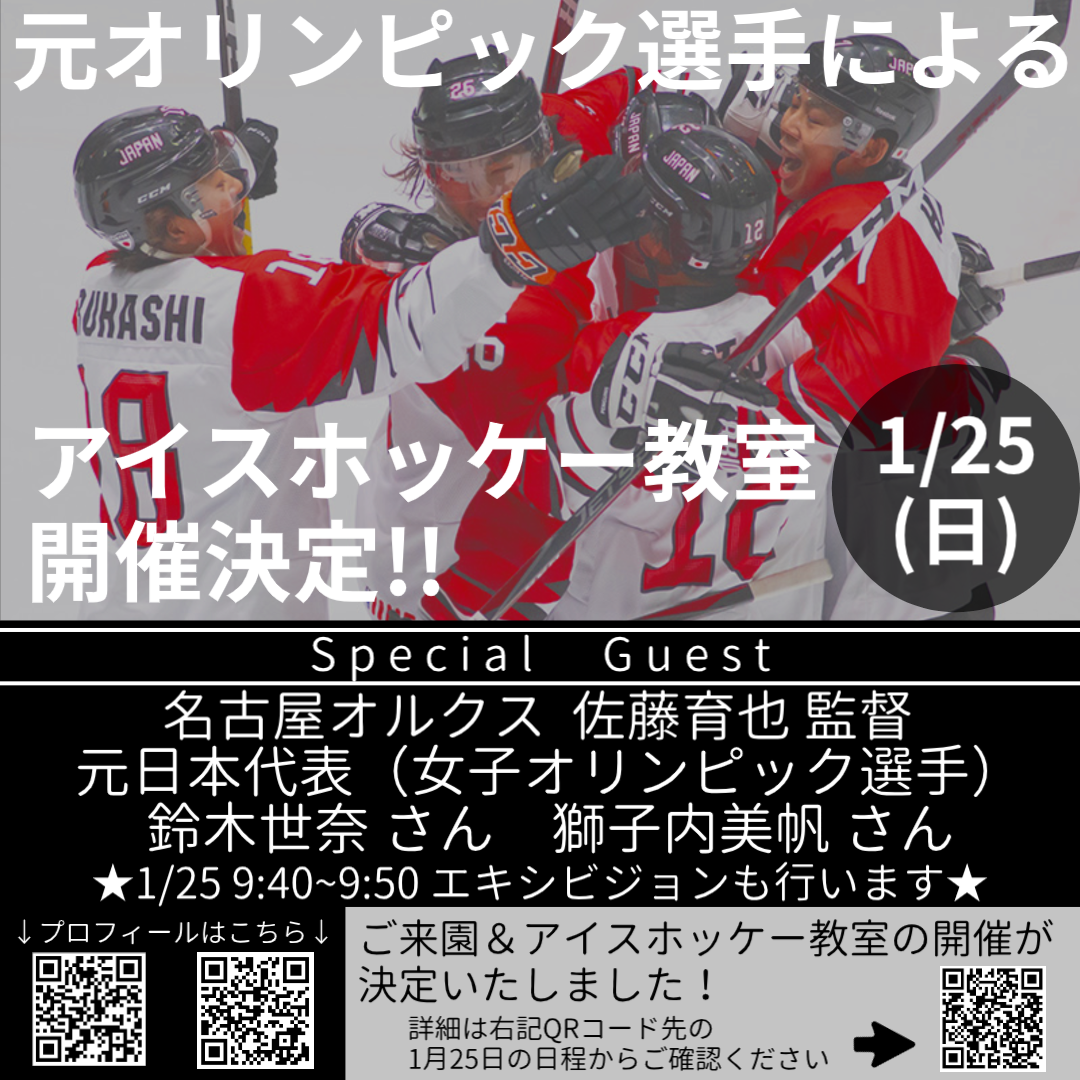 ★1月25日(日)元オリンピック選手によるアイスホッケー教室開催が決定!!★